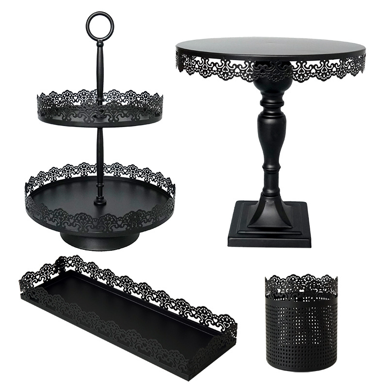 Black Dessert Table Props, Matte Black Dessert Holder, Wedding Tray, Lace-edged Wrought-iron Cake Stand, Cake Pan