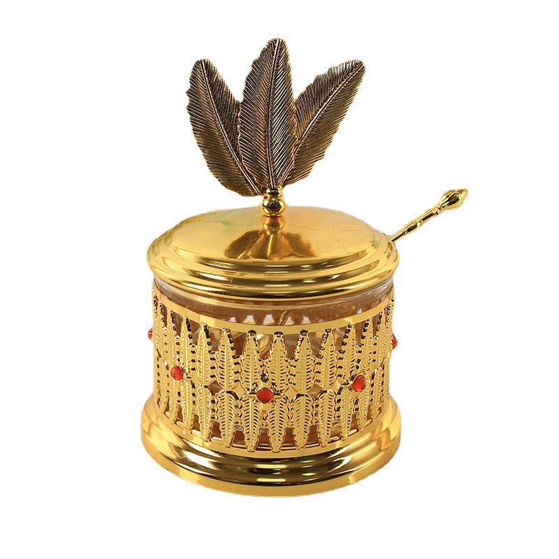 European wrought iron sugar jar dried fruit food glass candy jar with spoon storage jar ornament sugar jar wrought iron ornament