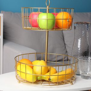 Factory Direct Supply Nordic Iron Double-Layer Fruit Basket, Detachable Fruit Plate, Kitchen Vegetable Storage Basket, Snack Organizer Tray