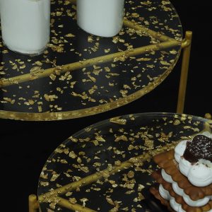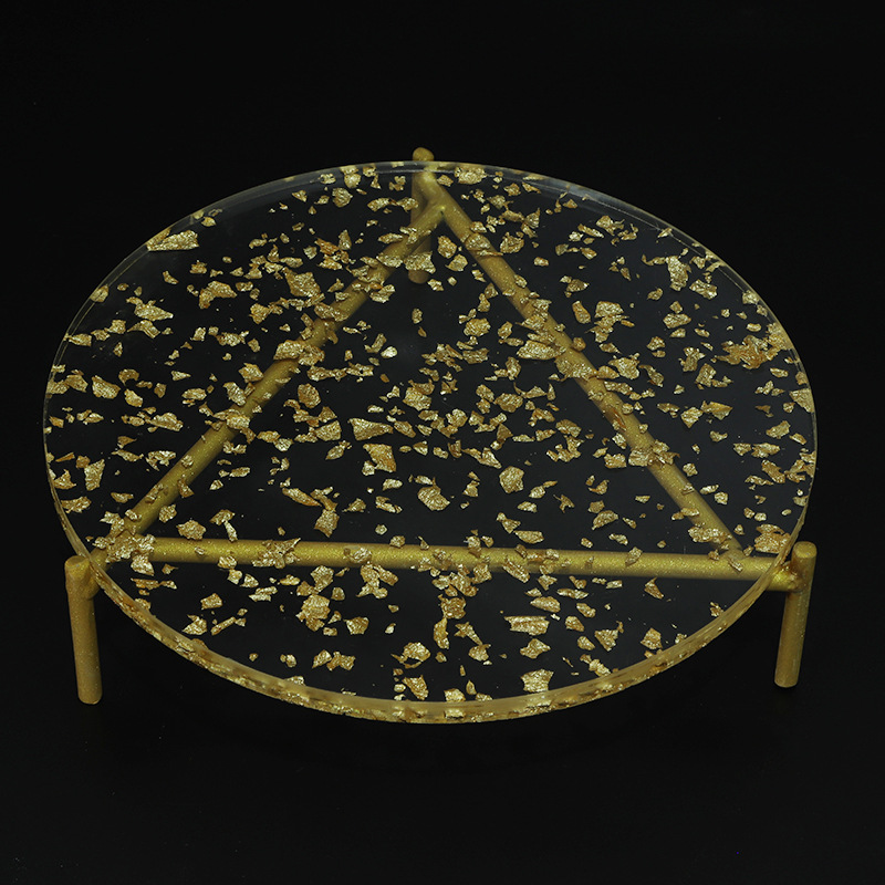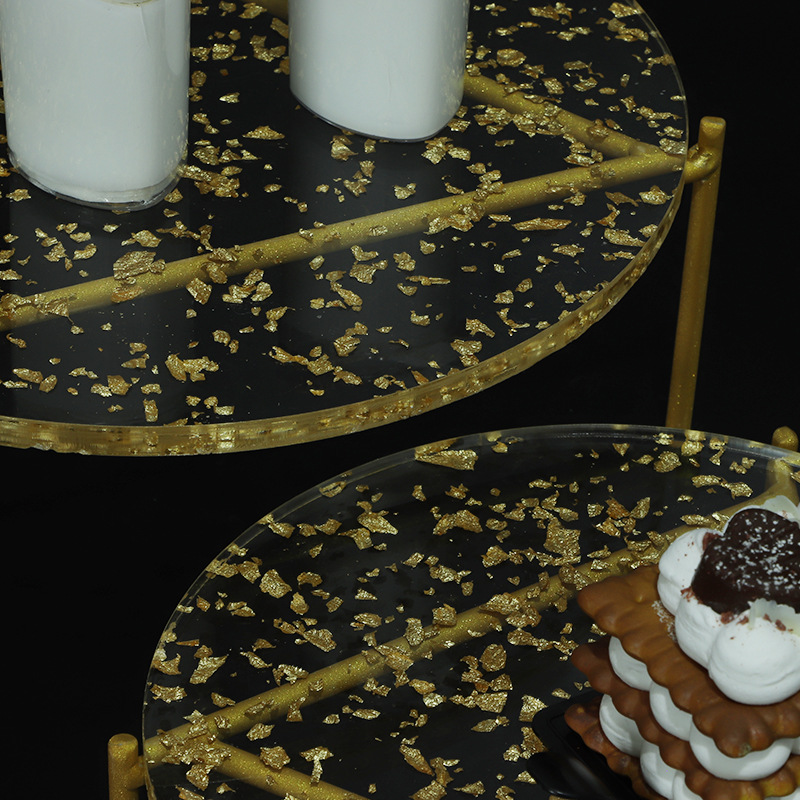 Golden dessert table ornaments display stand birthday cake plate acrylic gold leaf tray party dim sum plate