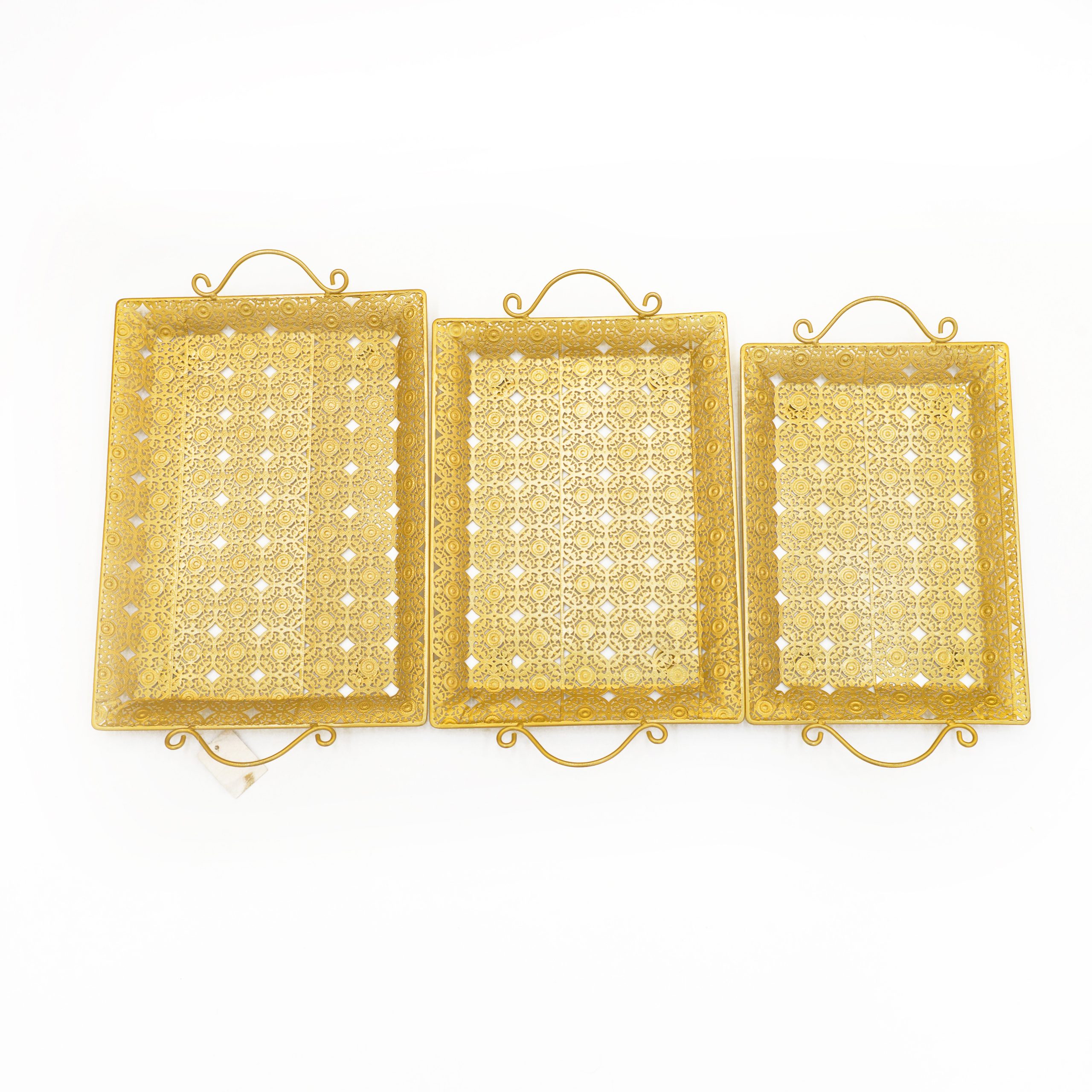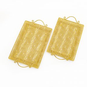 Designed with a sleek golden finish, this tray exudes a sense of luxury and sophistication. Its long rectangular shape provides ample space for organizing and displaying various items, be it desserts, tea sets, or other decorative pieces. Whether you are hosting a tea party or simply want to add a touch of elegance to your daily routine, this tray is a must-have.