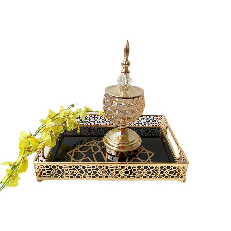 Home accessories: light luxury tabletop dresser, mirror tray, perfume makeup bottle, storage mirror tray