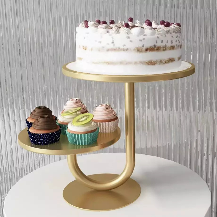 Vintage Gold Cake Display Prop, Cake Stand with High Feet, Wedding Dessert Table Cake Rack for Cake Shop Window Showcase.