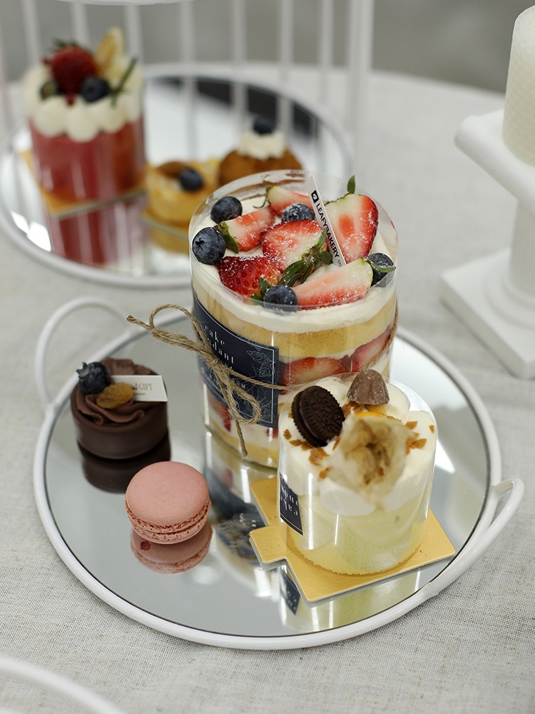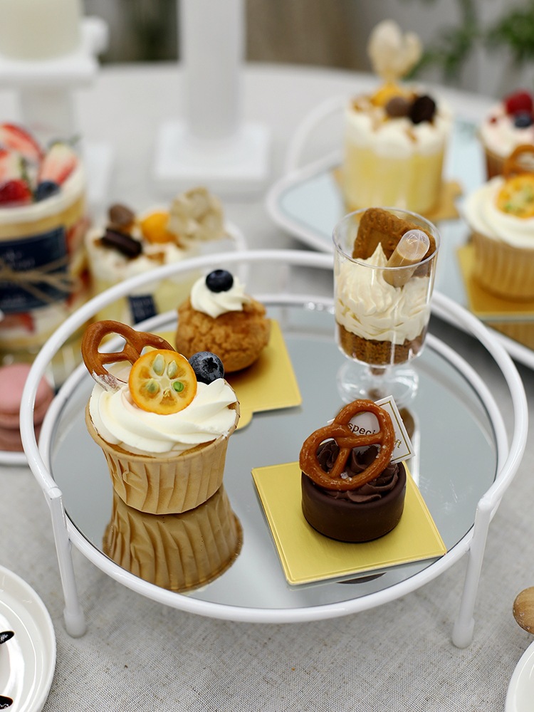 White wrought iron cake stand, wedding props, glass mirror snack stand