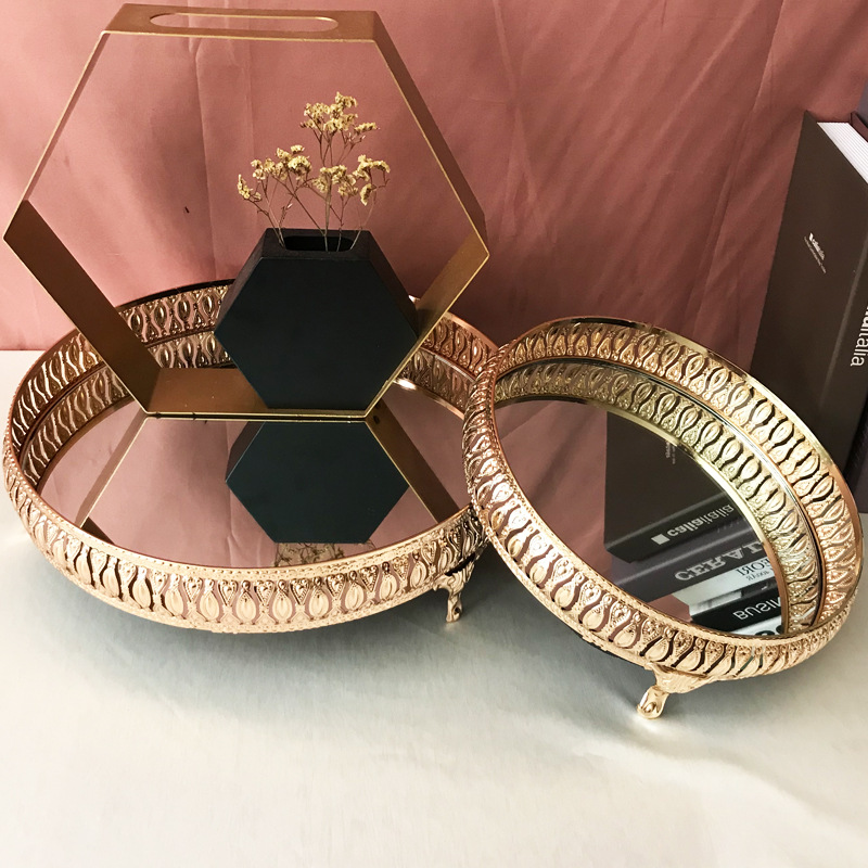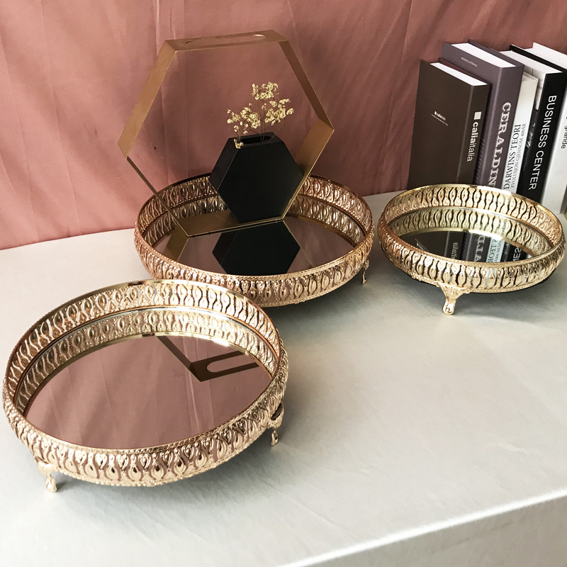 European wedding props, ornaments, wrought iron cake stands, metal trays, party desserts, mirror trays