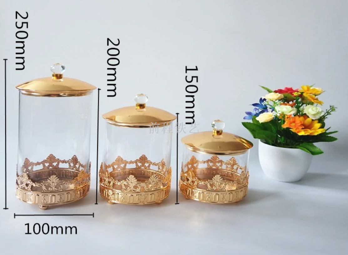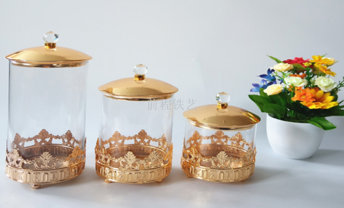 Wrought iron electroplating storage snacks, candy jars, glass transparent decoration process