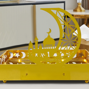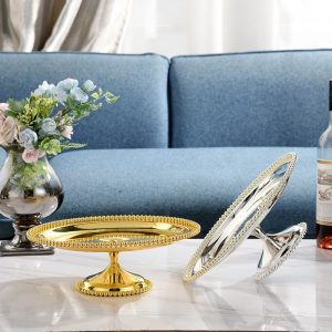 Arab style new mirror cake plate iron high-foot cake shelf dessert shelf glass cake tray
