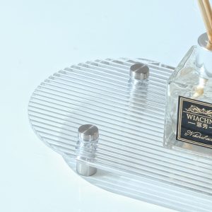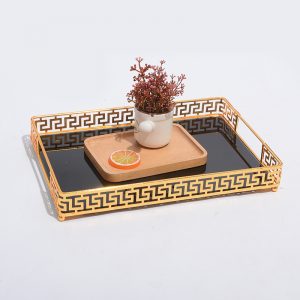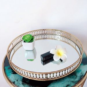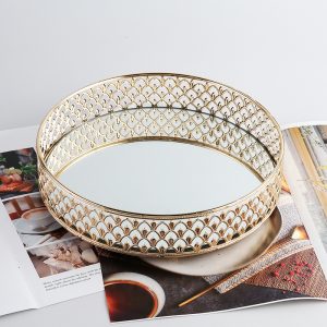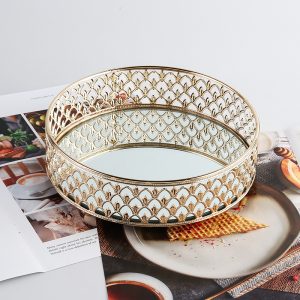 European style light luxury glass mirror tray metal storage living room tea table, water cup tea tray model house decoration fruit bowl