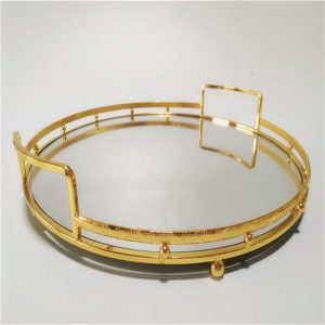 European round wrought iron glass mirror tray living room metal tray cake plate home storage creative ornaments