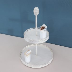 European wrought iron vintage white dessert table ornaments wedding cake plate display stand double dim sum stand
