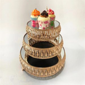 European wrought iron mirror cake tray, metal bar cake holder, dessert stand, breakfast tray, glass mirror cake tray