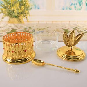 European wrought iron sugar jar dried fruit food glass candy jar with spoon storage jar ornament sugar jar wrought iron ornament