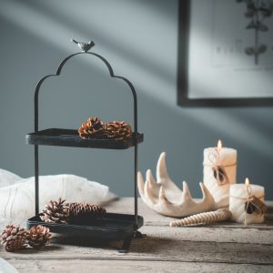 Run home black wrought iron decorative tray made old European style double layer cake tray rack metal decoration food tray